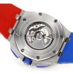 The Audemars Piguet Ryder Cup USA Replica is a marvel of watchmaking that combines Swiss precision with luxurious design. Crafted from 904L stainless steel. the robust yet elegant case and bezel offer durability. while the blue crystal dial exudes a sense of sophistication. The watch is powered by an automatic AP 3126 / 3840 movement and offers approximately 60 hours of power reserve. ensuring timekeeping is accurate to COSC certification limits.The watch’s aesthetics are complemented by its functionality. offering features such as hours. minutes. small seconds. date. and chronograph. Its rubber bracelet. adjustable to all sizes. provides a comfortable fit. while the steel buckle clasp ensures a secure grip. The watch also passed the 30m water resistance test. though swimming is not recommended. It truly mirrors the authentic watch. down to the font. punto. and finishings for writings and markings. This is the pinnacle of our 1:1 super clone Swiss mechanism watches. and comes with a full 2-year International United Luxury warranty.