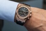 The bracelet is made of leather and is black in color. It has adjustable links as genuine for all sizes and a 904L stainless steel AP folding clasp that is pink gold in color. The dial is nicknamed the Grande Tapisserie and is black in color. The hour markers are ceramic sticks and the hands are 904L stainless steel Royal Oak hands. The watch has a variety of functions including hours. minutes. date. day. leap year. month. week indicator. and moonphase. It has passed the 30m water resistance test and is protected by a full 2 year international United Luxury warranty. It is a perfect 1:1 super clone Swiss mechanism watch and even your jeweler won’t be able to tell the difference!