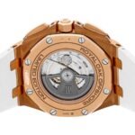 The Audemars Piguet Royal Oak Offshore 26408OR.OO.A010CA.01 replica is a luxury watch. The case is made of 904L stainless steel and is pink gold in color. It has a sapphire crystal and measures 44.00 mm in size and 14.40 mm in thickness. The bracelet is made of rubber and is adjustable for all sizes. It has a double-fold clasp made of 904L stainless steel and is also pink gold in color.