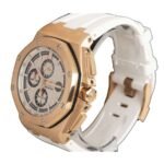 The dial is white in color and features stick indeces and Royal Oak hour-markers made of 904L stainless steel. The hands are also made of 904L stainless steel and are stick-shaped. The movement is an automatic AP 3126 / 3840 caliber with a power reserve of 60 hours and a precision of (-3/+3 sec/day) within COSC certification limits. It also has a sweep motion second hand. The watch is water-resistant up to 30m and comes with a 2 year international warranty. It is a perfect 1:1 super clone Swiss mechanism watch and even your jeweler won’t be able to tell the difference!