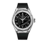 The Hublot Classic Fusion Black Dial Titanium Replica elegantly marries contemporary artistry with watchmaking excellence. This watch showcases a striking angular aesthetic that effortlessly stands out. The 40mm titanium case. coupled with the faceted design. exudes a modern yet sophisticated vibe. Its fusion of materials extends to a comfortable black rubber strap. ensuring both style and wearability.