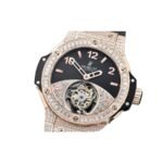 The Hublot Classic Fusion is adorned with magnificent diamonds. elevating its allure to unparalleled heights. The shimmering diamonds beautifully complement the deep black dial. which features a captivating Tourbillon display. mesmerizing all who lay eyes on it. This luxurious timepiece not only exudes style but is also built to withstand the rigors of everyday life. boasting a waterproof design that ensures its resilience. With its fusion of elegance. functionality. and impeccable craftsmanship. the Hublot Bigbang Classic Fusion with diamonds is a true testament to the brand’s commitment to timeless sophistication.