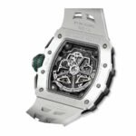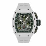 The Richard Mille Le Mans Classic White ATZ Ceramic Chronograph RM11-03 Replica is a high quality watch. It features a 904L stainless steel case with a transparent color and a white ceramic bezel. The movement is an automatic RMAC3 caliber with a power reserve of 60 hours and a precision of (-3/+3 sec/day) within COSC certification limits. The dial is silver with Arabic numerals and 904L stainless steel hour markers and hands.