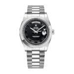 The Rolex 218206 Black Dial Replica is a luxurious watch that is sure to impress. It features a 904L stainless steel case and bezel. with a white gold bezel color. The crystal is made of sapphire. and the size is 41.00 mm. The bracelet is also made of 904L stainless steel. with an adjustable link for all sizes. The black dial features Roman numerals and 904L stainless steel stick hour markers and hands.