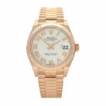 This Rolex Datejust Rose Gold Replica is a stunning watch. It features a 904L stainless steel case and bezel in a beautiful rose gold color. The sapphire crystal is 31.00 mm in size and the Oyster bracelet is adjustable for all sizes. The white dial has Roman numerals and ceramic hour markers. The movement is an Automatic caliber 2236 with a 60-hour power reserve and precision of -3/+3 sec/day within COSC certification limits. The watch has passed the 30m water resistance test and is protected by a full 2-year International United Luxury warranty.