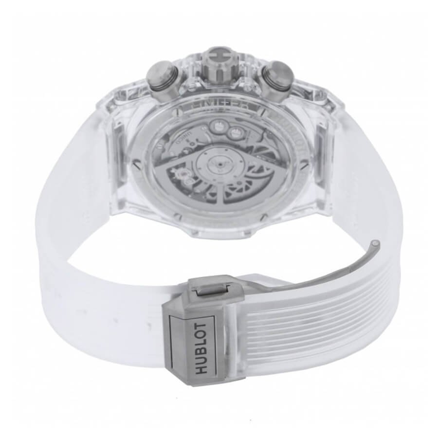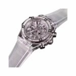 The Hublot Big Bang Unico Sapphire Baguettes 411.JX.4802.RT.1904 Replica is a luxury watch. It features an automatic movement with a HUB1242 UNICO caliber and a power reserve of 60 hours. The case is made of sapphire and is skeleton colored. while the bezel is gem-set and also skeleton colored. The bracelet is made of rubber and is adjustable for all sizes. with a stainless steel deployant clasp.