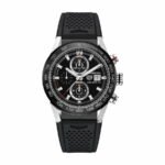 The TAG Heuer Carrera CAR201Z.FT6046 Black Rubber Replica is a striking watch. It features a 904L stainless steel case with a black bezel and sapphire crystal. The movement is an automatic TAG Heuer caliber Calibre Heuer 01 with a 60-hour power reserve and precision of -3/+3 sec/day within COSC certification limits. The second hand has a sweep motion.