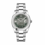 This is the Wimbledon Rolex Replica Watch. a perfect 1:1 super clone of the original. It features a 904L stainless steel case and bracelet. with a steel bezel and sapphire crystal. The dial is grey with Roman numerals and stick hands. The movement is an automatic caliber 3235 with a 60-hour power reserve and precision of -3/+3 seconds per day within COSC certification limits. It also has a sweep second hand.